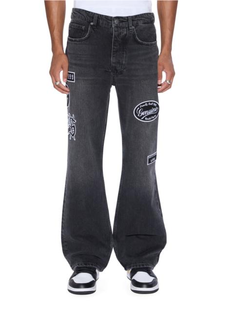 The Bronko Striker Patched is a mid-rise, full-length jean with a boot-cut leg, crafted from premium rigid indigo denim with a medium stone wash. It features seasonal patches on the front and back, finished with signature Maxx T-box and 4x4 embroidery, along with Ksubi branded hardware for a distinctive finish. FEATURES, SIZE & FIT - Flared wide leg denim jean - Regular fit - Mid rise - Button fly closure - 5 pocket jean - Fixed waistband - Ksubi t-box - Back 4x4 cross embroidery - Signature woven pocket tag - Branded hardware - Little/some stretch - 100% cotton - Size 32 inseam: 86cm / 33 3/4" - Size 32 front rise: 27cm / 10 3/4" - Model is wearing a size 32/M, height 184cm / 6'0", chest 86cm, waist 70cm, hip 94cm - Cool machine wash with like colours, wash inside out - Do not bleach - Remove promptly after wash - Do not tumble dry - Cool iron on reverse - Do not iron directly onto prints or metal hardware - Colour may transfer onto other garments and upholstery - MPF25DJ038