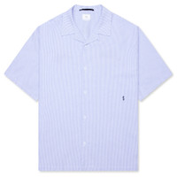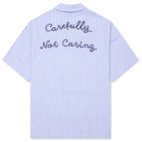 The Ksubi Caring Diner Short Sleeve Shirt in Tru Stripe features an oversized fit with a regular-length finish. Crafted from lightweight striped cotton, the silhouette is detailed with a button closure and chainstitch embroidery across the back, blending classic shirting with subtle Ksubi character. - 100% Cotton - Lightweight build - Button closure - Boxy fit - Chain stitch embroidery - Branded hardware - Style No: MFA25SH016