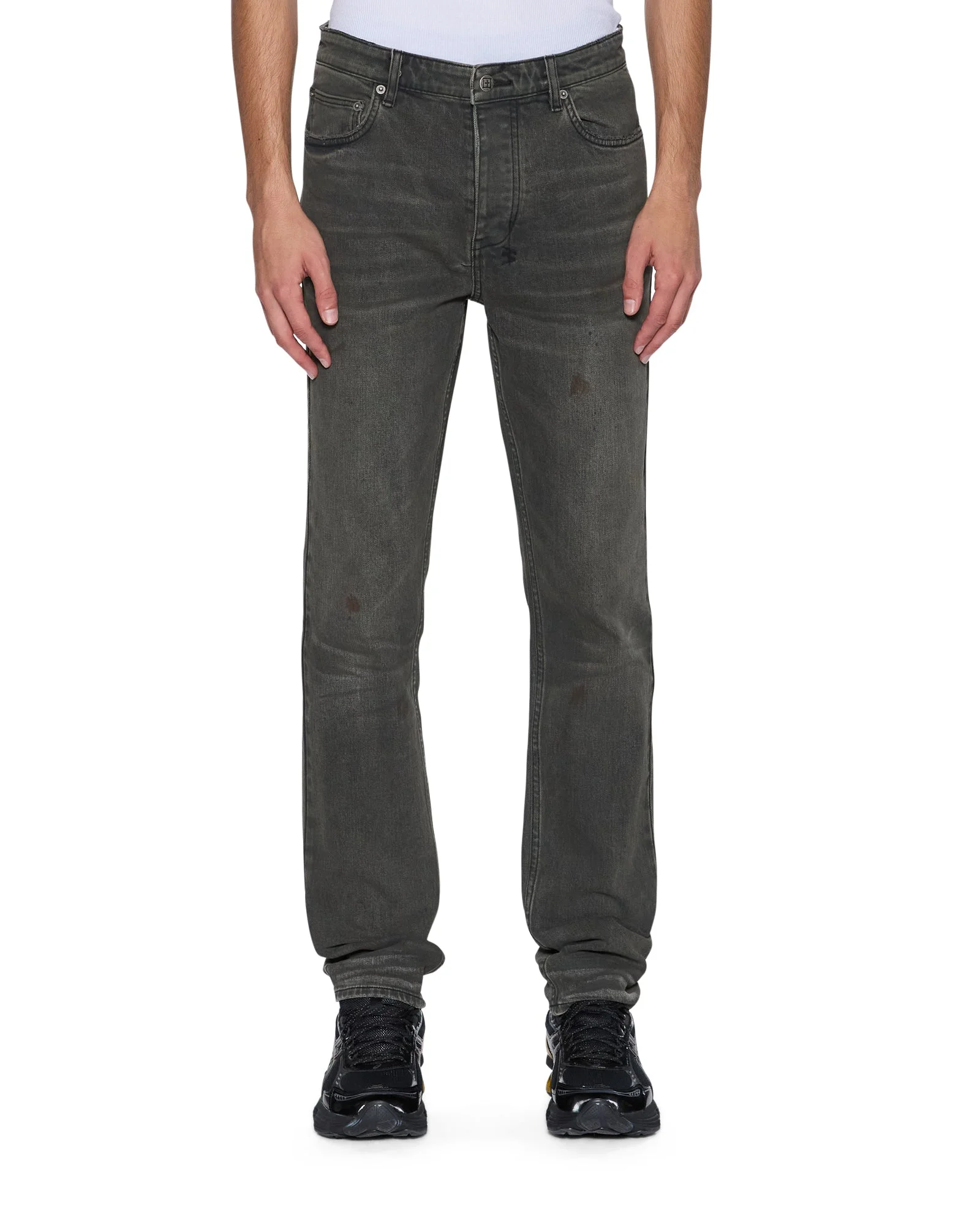 Chitch Mekanik Grey is a slim tapered jean with a mid-long rise and signature dutch tab. Made from European comfort stretch black denim with a heavy vintage-inspired stone wash, it is finished with signature T-box and 4x4 embroidery and Ksubi branded hardware. FEATURES, SIZE & FIT - Skinny leg denim jean - Full length - Mid rise - Button fly closure - 5 pockets - Fixed waistband - Ksubi t-box - Back 4x4 cross embroidery - Signature woven pocket tag - Branded hardware some/plenty of stretch - 99% cotton 1% elastane - Size 32 inseam: 84cm / 33" - Size 32 front rise: 26cm / 10 1/8" - Model is wearing a size 30/m, height 181cm/6'0", chest 84cm, waist 68cm, hip 94cm - MFA25DJ009 cool machine wash with like colours, wash inside out, do not bleach, remove promptly after wash, do not tumble dry, cool iron on reverse, do not iron directly onto prints or metal hardware, colour may transfer onto other garments and upholstery