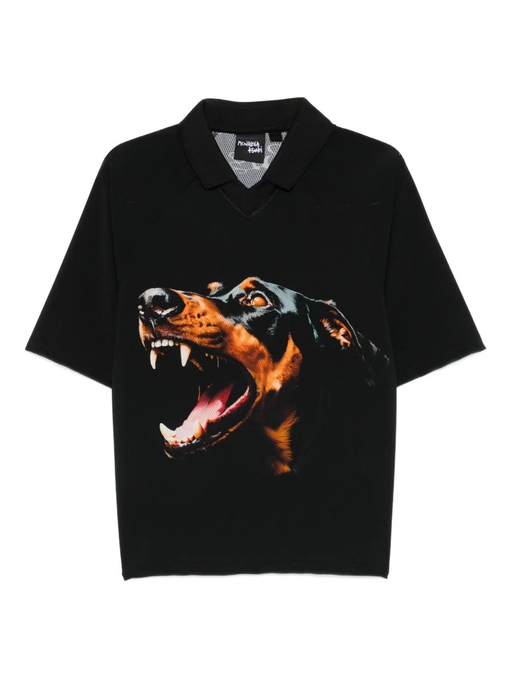 dog-print polo shirt Highlights - Black - Dog print - Polo collar - Short sleeves - V-neck - Jersey fabric Imported Composition Nylon 82%, Elastane 18% SIZE & FIT Model measurements Height 5 ft 11 in(1.8 m) Bust/Chest 32.67 in(83 cm) Hips 36.22 in(92 cm) Waist 24.4 in(62 cm) Washing instructions Machine Wash