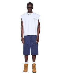The Drill Maxx Operator Short Navy is an exaggerated wide-leg jean short designed with a long rise and crafted from premium navy drill fabric with a stone wash finish. The style features carpenter panels, a right leg carpenter pocket tab, cut-away front pockets, back patch pockets, and signature t-box and 4x4 embroidery with Ksubi branded hardware for an elevated utility aesthetic. FEATURES, SIZE & FIT - Exaggerated straight leg denim jean - Long rise - Button fly closure - Pockets - Waistband details - Hem/cuff detail - Ksubi t-box - Back 4x4 cross embroidery - Signature woven pocket tag - Branded hardware - No stretch - 100% cotton - Size 32 inleg: 11, front rise: 14, hem circumference: 25 - Model is wearing a size 30/M, height 181cm/6'0", chest 84cm, waist 68cm, hip 94cm - Care: Machine wash cold with like colours, do not tumble dry, do not bleach, cool iron if necessary