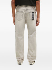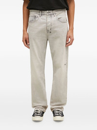 embroidered-patch jeans Highlights - Grey - Faded wash - Back-pocket text patch - Small embroidered logo - Distressing details Imported Composition Cotton 99%, Elastane 1% Washing instructions Read Manufacturer Guidelines