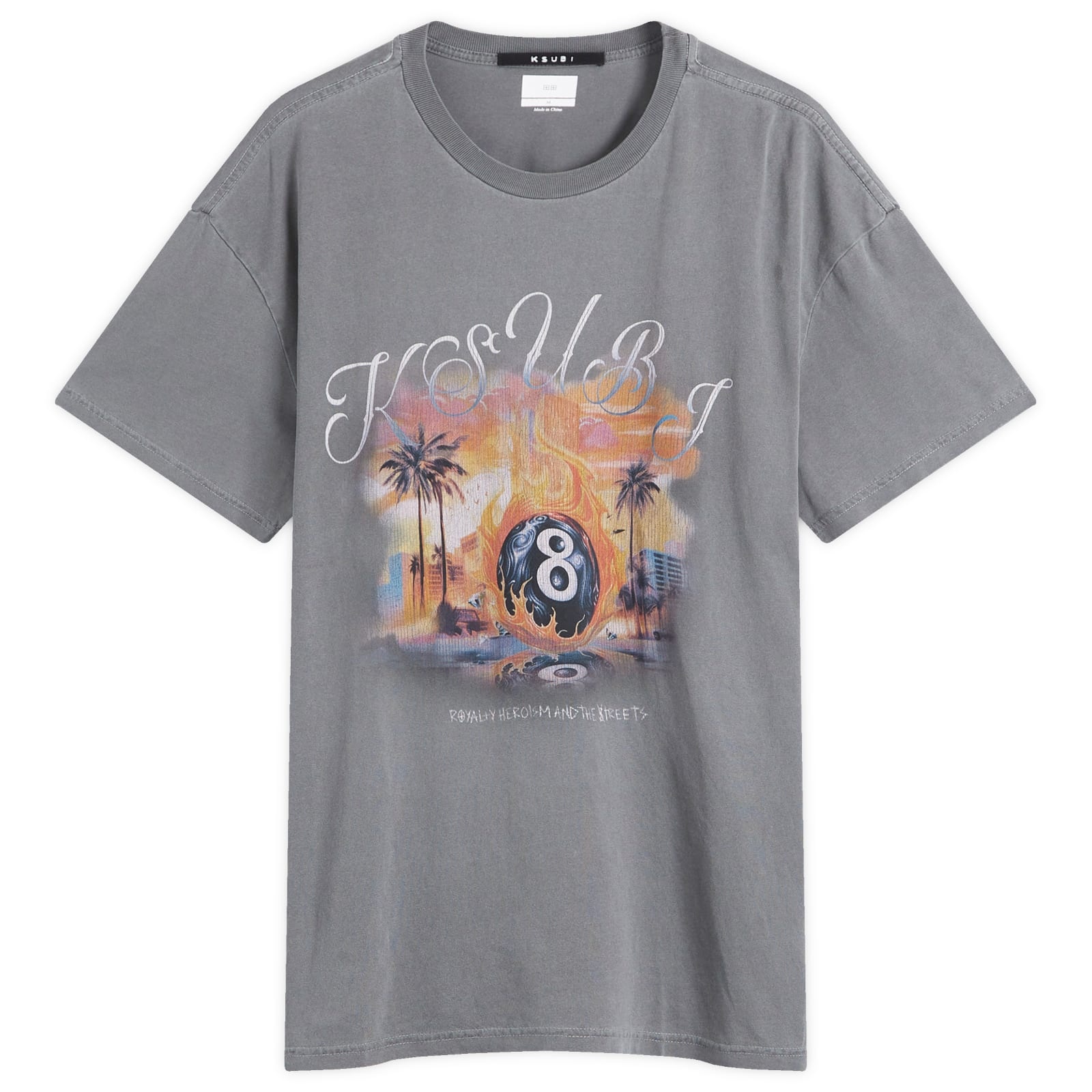 The Ksubi World Order Biggie Tee in charcoal is all about effortless cool. With its oversized fit, raw-cut back hem, and signature rats tail, it’s made from premium aged cotton for that lived-in feel. Finished with bold seasonal artwork and iconic T-box and 4x4 branding, it’s a statement staple for any season. - 100% Cotton - Oversized Fit - Crewneck - Printed Branding