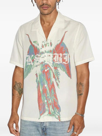 graphic-print shirt Highlights - White - Front button fastening - Text print - Notched lapels - Short sleeves Imported Composition TENCEL™ 100%