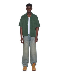 The Kursed Diner SS Shirt Hash is a boxy, oversized-fitting short sleeve shirt with a waist-finishing length. Cut from peached cotton twill in a hash green colourway, it features a chest pocket with a W bartak, tonal seasonal artwork embroidered on the pocket and across the back, and finished with signature T-box and 4x4 branding and Ksubi branded hardware. FEATURES, SIZE & FIT - Oversized fit shirt - Button placket closure - Neckline - Cuban collar - Short sleeve - 4x4 cross embroidery - Ksubi t-boxed branding - No stretch - 55% tencel 45% cotton, size m length 71cm / 28", chest circumference 128cm / 50 3/8", sleeve length 27.5cm / 10 3/4", model is wearing a size 30/m, height 181cm / 6'0", chest 84cm, waist 68cm, hip 94cm - Cool gentle machine wash with like colours, do not bleach, do not tumble dry, cool iron on reverse, do not dry clean - Product code: MPS26SH024