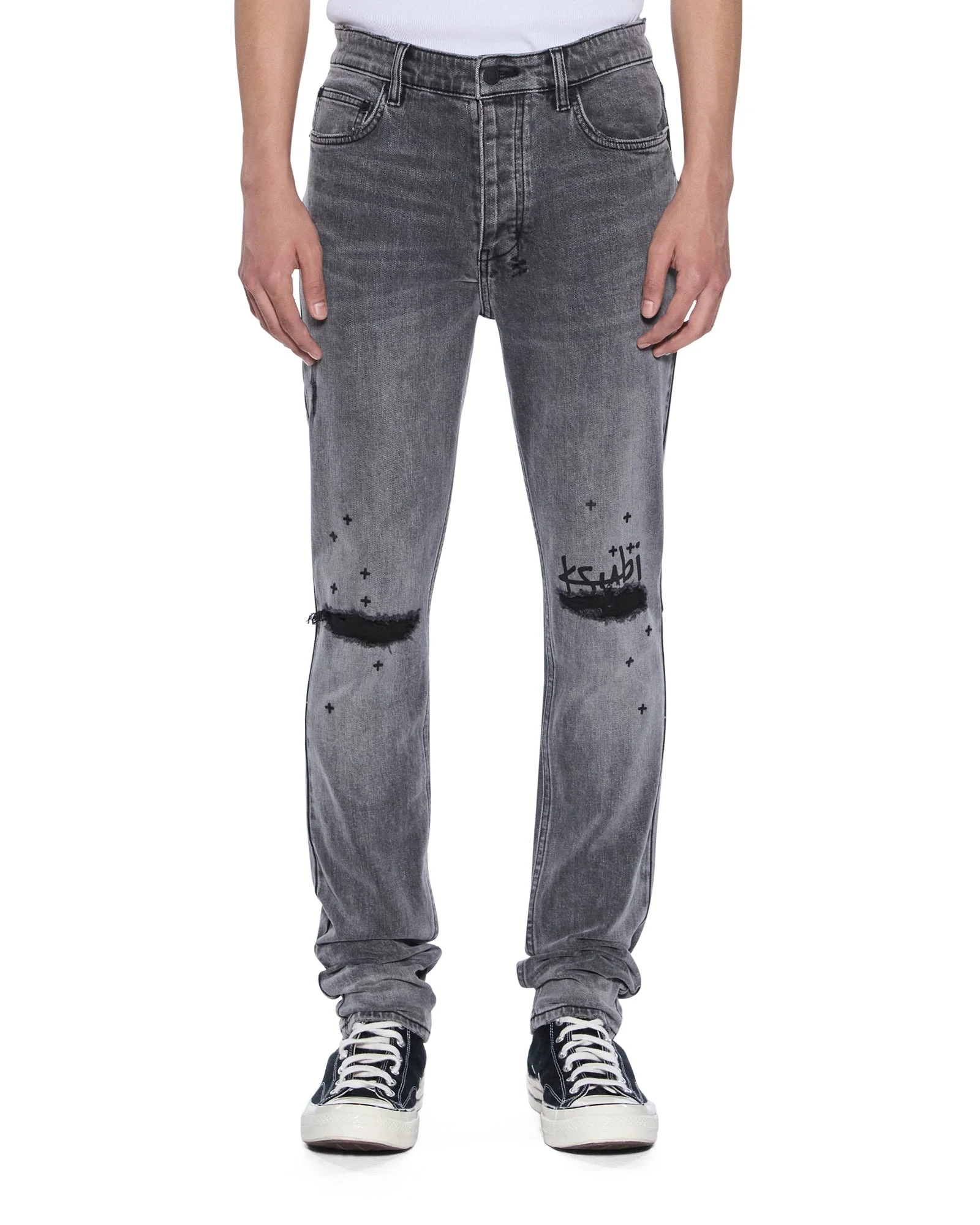 The Chitch Sinners 1999 is a slim tapered jean with a mid-long rise waist, made from a premium comfort stretch light stone washed denim.This jean features knee deconstruction with the Ksubi 1999 logo screen printed at the knee and randomised cross hotfix details. Finished with signature t-box and 4x4 embroidery and Ksubi branded hardware. FEATURES, SIZE & FIT - Slim tapered leg denim jean - Mid to long rise - Button fly closure - 5 pocket jean - Fixed waistband - Ksubi t-box - Back 4x4 cross embroidery - Signature woven pocket tag - Branded hardware - Little/some stretch - 99% Cotton, 1% Elastane - Size 32 inseam: 83cm / 32 5/8" - Size 32 front rise: 28cm / 11" - Model is wearing a size 32/M, height 183cm/6'0", chest 100cm, waist 76cm, hip 99cm - Cool machine wash with like colors, wash inside out, do not bleach, remove promptly after wash, do not tumble dry, cool iron on reverse, do not iron directly onto prints or metal hardware, color may transfer onto other garments and upholstery - MPF24DJ002