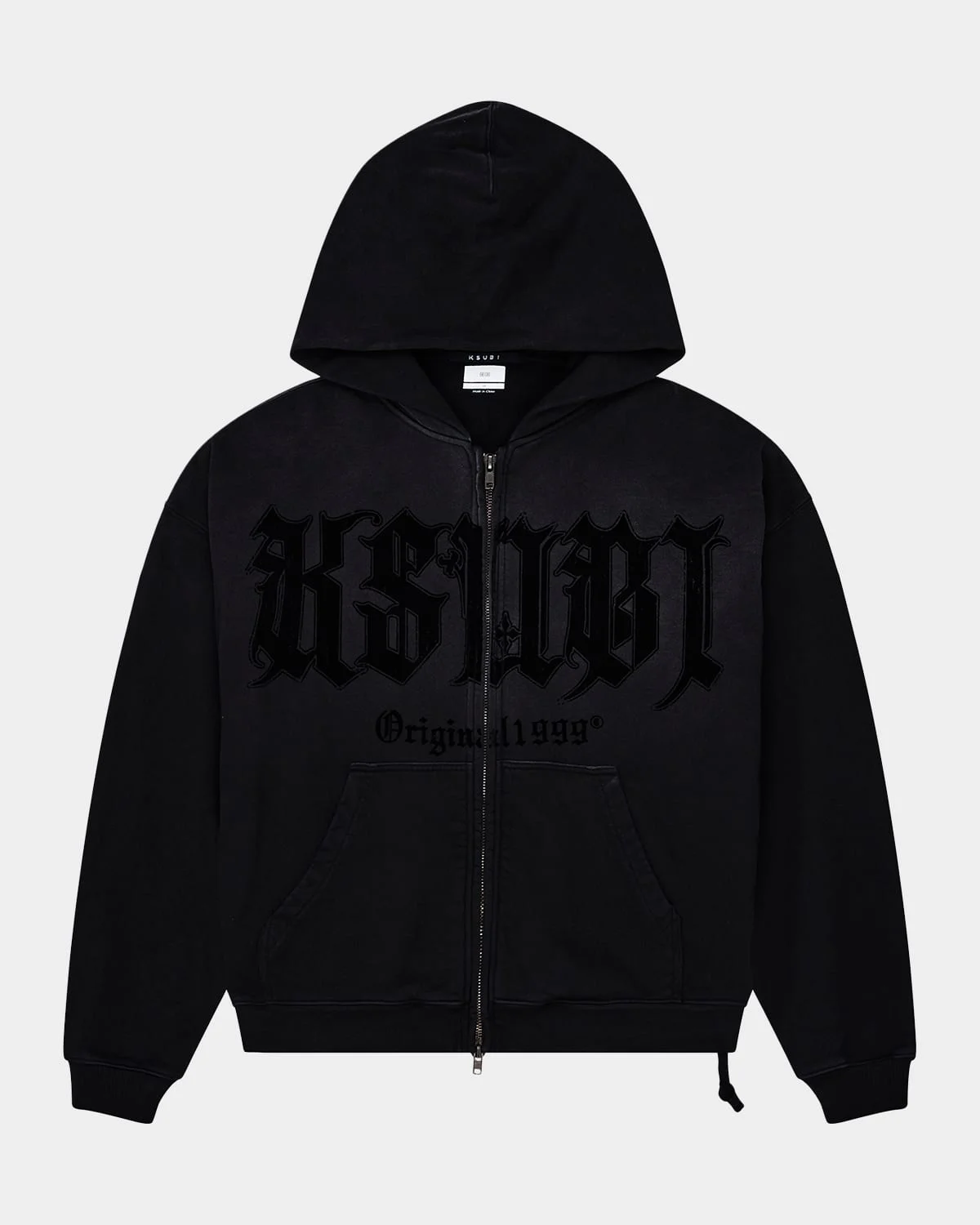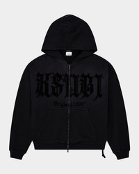 The "Kstudio Ekcess" hoodie from Ksubi is made from premium garmentdyed cotton jersey with an aged wash Raised rubber "Sign of the Times" artwork on the front Hooded neckline Fullzip front Split kangaroo pouch Dropped shoulder Signature ratstail Back 4x4 crosses Ksubi tbox branding Oversized, boxy fit Cotton Machine wash cold Imported
