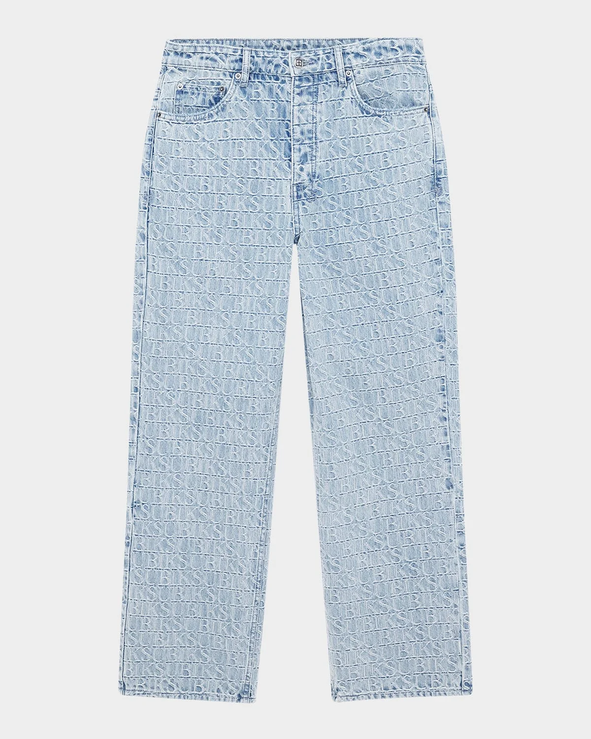 - Ksubi jeans crafted from premium denim defined by a repeat logo pattern - Regular rise - Five-pocket style - Maxx T-box and 4x4 embroidery - Signature woven pocket tag - Relaxed fit through wide legs - Button-zip fly; belt loops - Branded hardware - Cotton - Machine wash cold, wash inside out - Imported