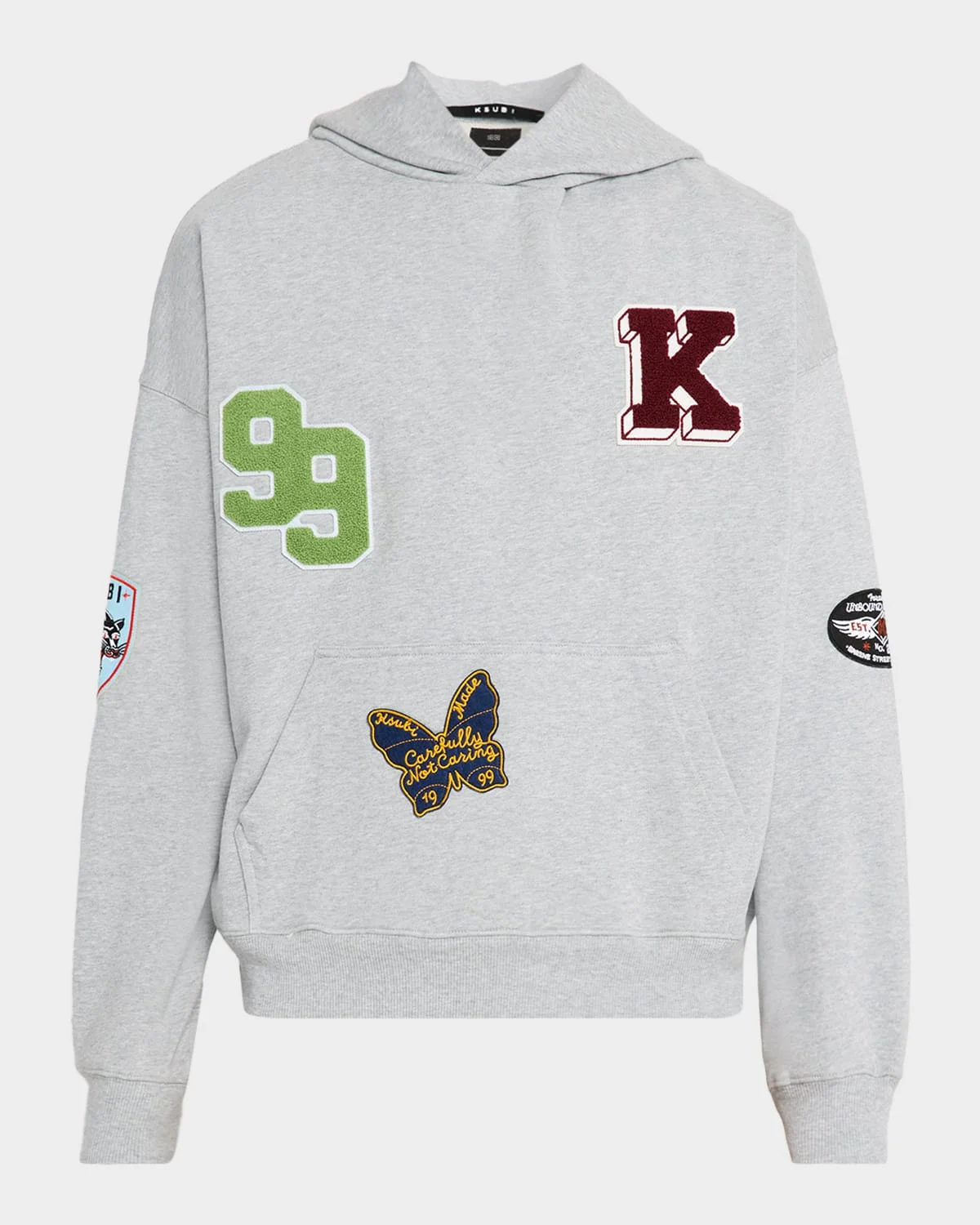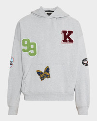 The "Patched Ekcess" hoodie from Ksubi is made from marled 480gsm loopback fleece, defined by bright boucle embroidered appliques throughout. Hooded neckline Front kangaroo pocket Dropped shoulder Ribbed cuffs and hem Signature ratstail Tbox and 4x4 embroidery branding Pullover style Oversized, boxy fit Cotton Machine wash cold Imported