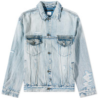 Renowned for its signature denim, Ksubi remains uninfluenced by consumer trends and chooses to set its own agenda. Crafted from premium denim, this two tone denim jacket is designed with an oversized silhouette. Featuring a large dollar printed graphic on the back with signature contrasting 4x4 cross embroidered branding. - 100% Cotton - 4 Pocket Detailing - Button Detailing - Embroidered Branding