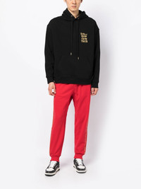 slogan-embroidered track pants red/yellow cotton embroidered slogan elasticated drawstring waistband front zip fastening pockets two rear patch pockets Imported Composition Cotton 100% SIZE & FIT Model measurements Height 6 ft 2 in(1.87 m) Bust/Chest 34.25 in(87 cm) Hips 36.22 in(92 cm) Waist 29.52 in(75 cm) FittingInformation This piece fits true to size. We recommend you get your regular size Designed to be loose over the leg with a fitted waist and hem Made with a mid-weight fabric Washing instructions Hand Wash