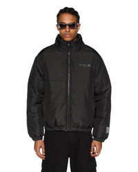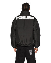 The Sott Puffer Jacket Black features a boxy fit with a zip-through front, zip-up pockets, wadded ribs, and elastic cuffed sleeves. Made from black European ripstop nylon with midweight internal wadding, it showcases a raised rubber Sign Of the Times logo on the back shoulder and front chest, finished with T-box and 4x4 branding in raised rubber. FEATURES, SIZE & FIT - Regular fit puffer jacket - Reversible fit - Wadded body - Zip through front closure - Welted pockets - Regular length - 4x4 cross embroidery - Ksubi t-box branding - Ksubi sleeve tag - Ksubi branded hardware - No stretch - 100% polyester - Size M length: 71cm / 28" - Model is wearing a size 30/m, height 181cm / 6'0", chest 88cm, waist 80cm, hip 86cm - Do not wash, spot clean with damp cloth as required, do not bleach, do not tumble dry, cool iron if needed, do not iron directly onto prints or hardware, dry cleanable - MPS25JK003
