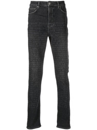 text-print mid-rise tapered jeans Highlights - Charcoal grey - Stretch organic cotton - Dark wash denim - Text print - Logo patch to the rear - Belt loops - Front button fastening - Mid-rise - Tapered leg - Slim cut - Classic five pockets Imported Composition Organic Cotton 99%, Elastane 1% SIZE & FIT Model measurements Height 6 ft 2 in(1.89 m) Bust/Chest 39.76 in(101 cm) Hips 37.4 in(95 cm) Waist 29.92 in(76 cm) FittingInformation Designed for a slim tapered leg, offering a close fit that sits just away from the leg with a closer fit towards the ankle Constructed from stretch denim, this piece offers a stretch fit with durability This piece fits true to size – take your usual size Washing instructions Machine Wash