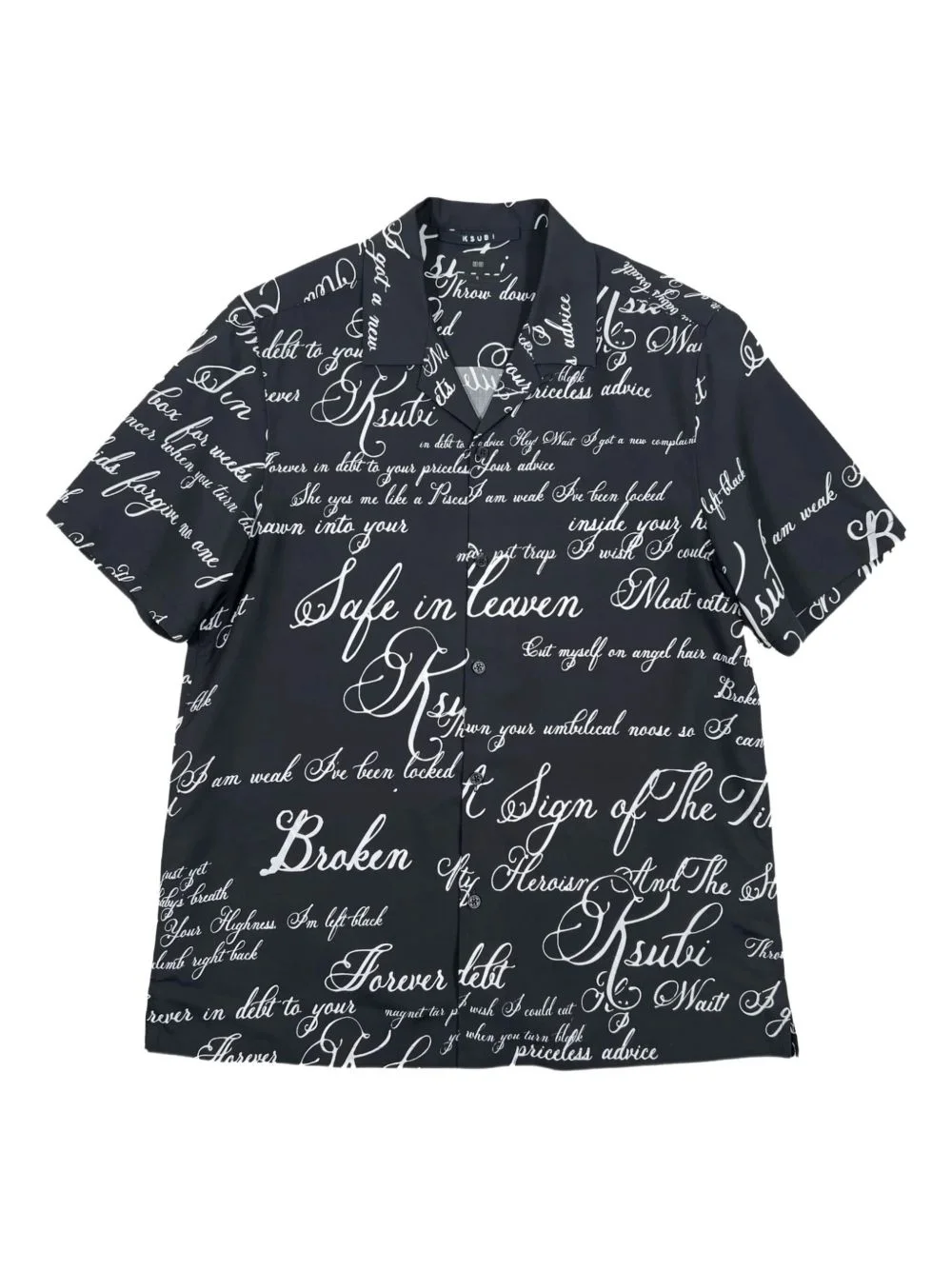 text-print shirt Highlights - Black - Front button fastening - Notched lapels - Short sleeves - Straight hem Imported Composition TENCEL™ 100%