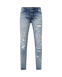 The Van Winkle Dakota Blue Repair is a mid-rise, full-length skinny jean with a five-pocket design. Made from European indigo comfort stretch denim with vintage wash treatments replicating authentic ageing, it features strong seam ageing, heavy repaired deconstructions with traditional repair topstitching, and sporadically placed plus embroideries, finished with contrast T-box and 4x4 embroidery, ghost patch detailing, and Ksubi hardware. FEATURES, SIZE & FIT - Skinny leg denim jean - Full length, mid rise - Button fly closure - 5 pockets with fixed waistband - Ksubi t-box and back 4x4 cross embroidery - Signature woven pocket tag and branded hardware - Some/plenty of stretch, 98% cotton 2% elastane -