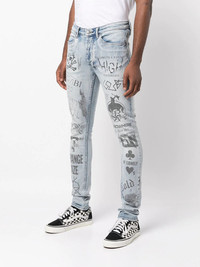 Van Winkle graphic-print skinny jeans punk blue cotton-denim graphic print to the front mid-rise button fly fastening belt loops classic five pockets skinny cut Imported Composition Cotton 100% SIZE & FIT Model measurements Height 6 ft 1 in(1.85 m) Bust/Chest 39.76 in(101 cm) Hips 36.61 in(93 cm) Waist 27.95 in(71 cm) FittingInformation This piece fits true to size. We recommend you get your regular size Cut for a slim fit Made with a mid-weight fabric Washing instructions Machine Wash
