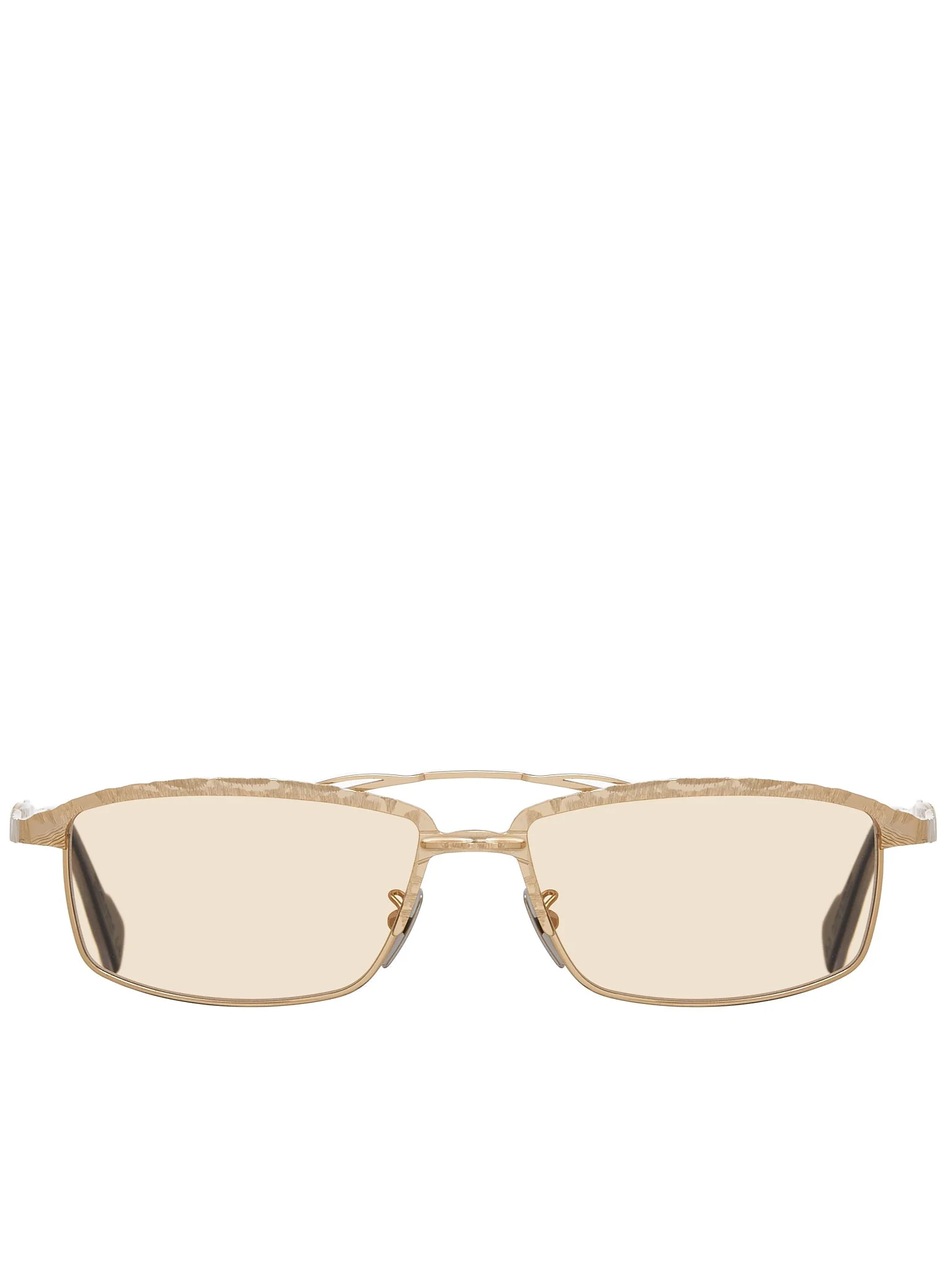 KUBORAUM sunglasses in gold, handcrafted design, light brown lenses, metal frame, adjustable nose pads, acetate temple tips, case included. Made in Italy Metal, Acetate, Glass