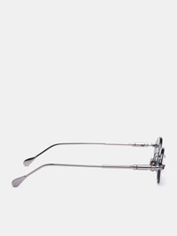 KUBORAUM sunglasses in gold & blue, handmade, metal construction, oval rimless frames, gunmetal finish, hinge embellishments, red & blue gradient-tinted lenses, adjustable nose pads, case included. Made in Italy 100% Metal One Size
