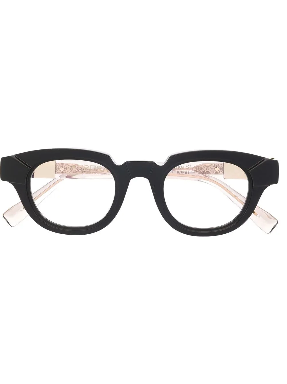 square-frame glasses black/gold tone square frame clear lenses gold-tone hardware straight arms curved tips All glasses from FARFETCH are sold as non-prescription frames. These glasses come with a protective case. Made in Italy Composition Acetate 100% SIZE & FIT Measurement Arm Length 5.7 in(14.5 cm) Bridge Width 0.9 in(2.3 cm) Lens Diameter 1.81 in(4.6 cm) Total Width 5.59 in(14.2 cm)