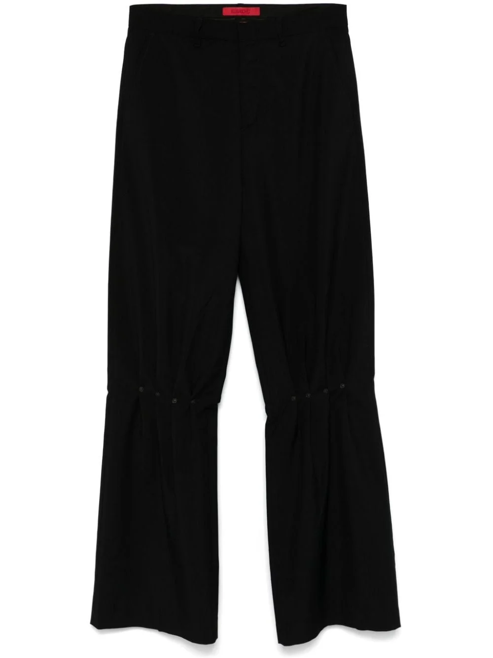 rivet trousers Highlights - Black - Textured finish - Rivet detailing - Concealed front button, hook and zip fastening - Belt loops - Two side slash pockets - Pleat detailing - Two rear jetted pockets - Straight leg Made in Italy Composition Lining: Cotton 100% Outer: Polyester 50%, Wool 40%, Mohair 10%