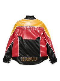 Rider jacket Highlights - Black/yellow/red - Faux leather - Panelled design - Front zip fastening - Mock neck - Embroidered logo at the chest - Logo patch to the front - Long sleeves - Touch-strap cuffs - Two side zip-fastening pockets - Rear zip-fastening pocket - Logo patch to the rear - Internal zip-fastening pocket - Full lining - Rear curved hem Made in Italy Composition Outer: Polyester 50%, Polyurethane 50% Lining: Polyester 100%