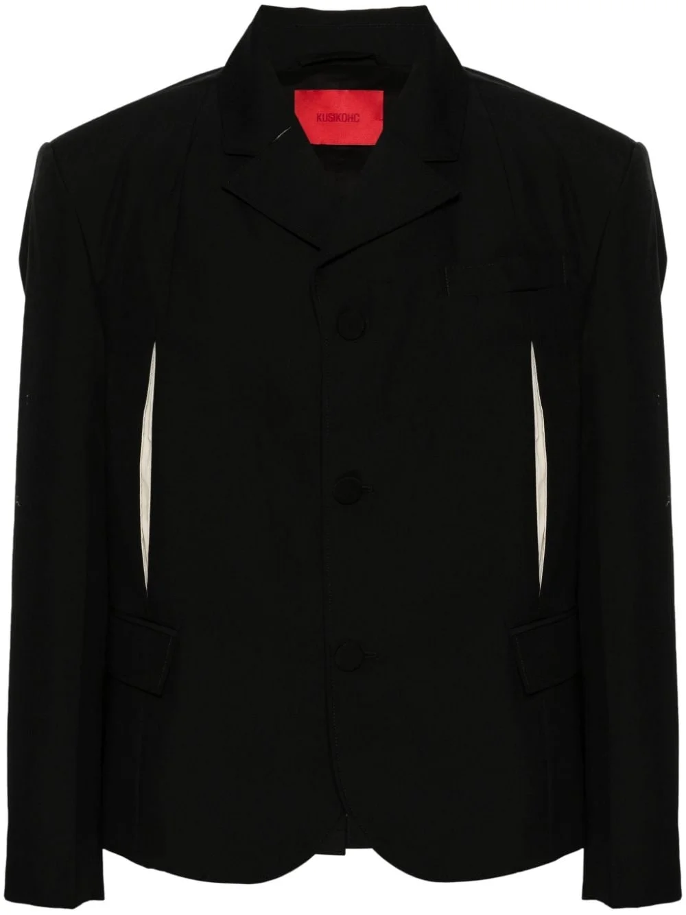 Incission blazer Highlights - Black/light beige - Interwoven design - Inverted pleats with contrasting panel detail - Fabric-covered buttons - Embroidered logo at the sleeve - Notched lapels - Shoulder pads - Long sleeves with faux-buttoned cuffs - Chest welt pocket - Two front flap pockets - Internal pocket - Front button fastening - Straight hem - Full lining - When buying this unisex item, keep in mind that it is graded in standard men's sizing. Made in Italy Composition Outer: Polyester 55%, Wool 45% Lining: Cotton 100% SIZE & FIT Model measurements Height 5 ft 9 in(1.76 m) Bust/Chest 31.88 in(81 cm) Hips 35.43 in(90 cm) Waist 24.8 in(63 cm) FittingInformation This unisex piece is designed for a relaxed fit whether you usually select women's or men's sizes The internal shoulder pads offer a structured shape Made from a midweight non-stretch fabric