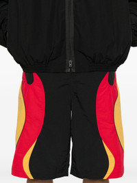Rider flame-print shorts Highlights - Black - Flame pattern - Red panels - Gold-tone panels - Flat front - Button fly Imported Composition Outer: Nylon 100% Lining: Polyester 80%, Cotton 20% SIZE & FIT Model measurements Height 6 ft 2 in(1.87 m) Bust/Chest 37.79 in(96 cm) Hips 37.79 in(96 cm) Waist 30.31 in(77 cm) Washing instructions Dry Clean Only