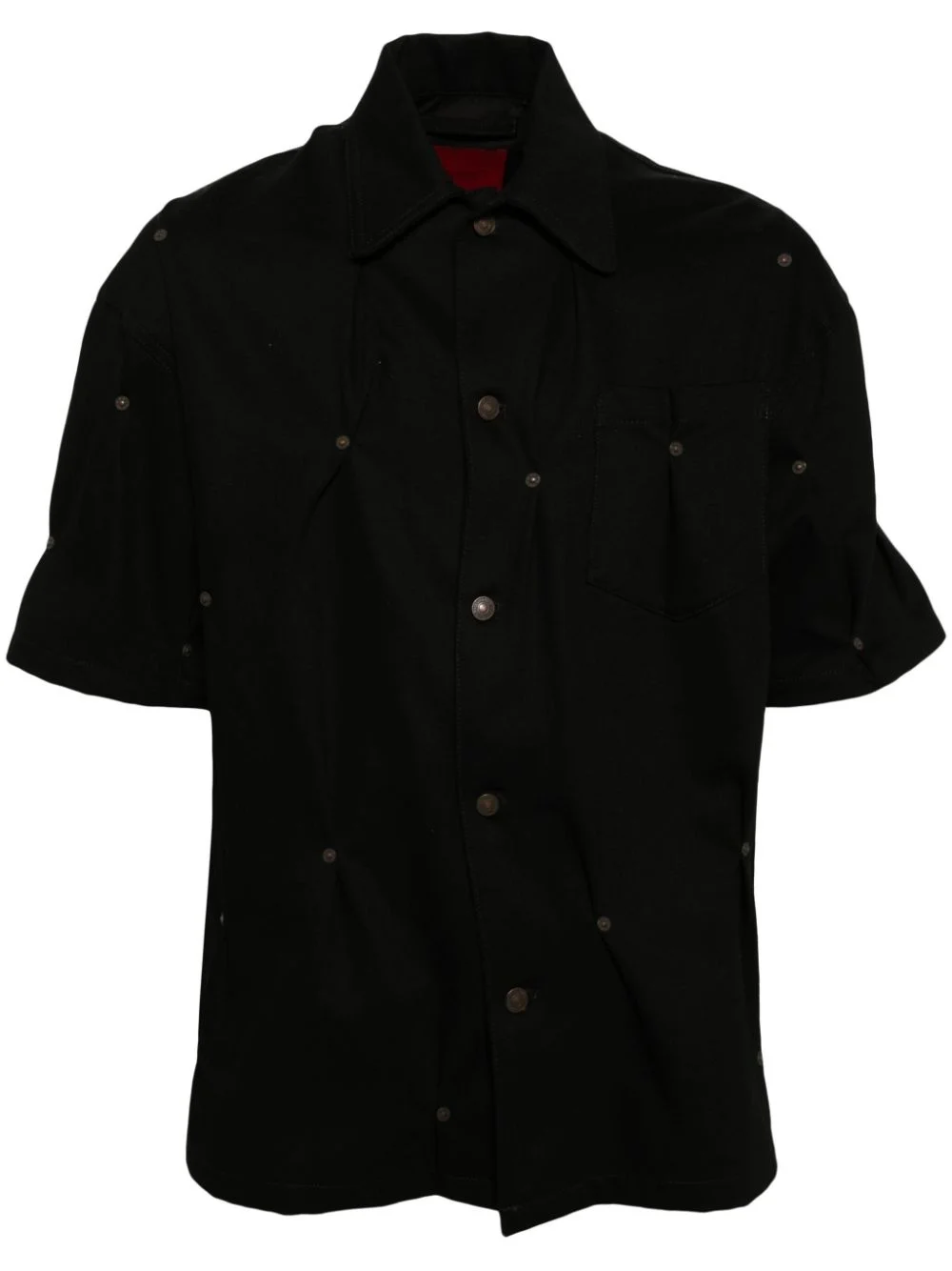 Multi-Rivet denim short sleeves shirt Highlights - Black - Cotton - Denim - Multi-rivet - Short sleeves - Spread collar - Bronze-tone hardware - Front button fastening - Front patch pocket - Straight hem Made In Italy Composition Outer: Cotton 100% Lining: Cotton 100% SIZE & FIT Model measurements Height 6 ft 2 in(1.87 m) Bust/Chest 33.07 in(84 cm) Hips 35.43 in(90 cm) Waist 26.77 in(68 cm) FittingInformation Designed for an oversized fit, offering additional room throughout Sturdy and hard-wearing, this denim piece offers no stretch