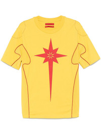 Rider T-shirt Highlights - Yellow - Crew neck - Short sleeves - Mesh panelling - Contrast stitching Imported Composition Cotton 100%, Polyester 90%, Spandex/Elastane 10% SIZE & FIT Model measurements Height 6 ft 2 in(1.87 m) Bust/Chest 36.41 in(92.5 cm) Hips 37 in(94 cm) Waist 29.52 in(75 cm) FittingInformation Designed for a relaxed fit, this piece allows for comfort and movement when worn Made from a midweight fabric