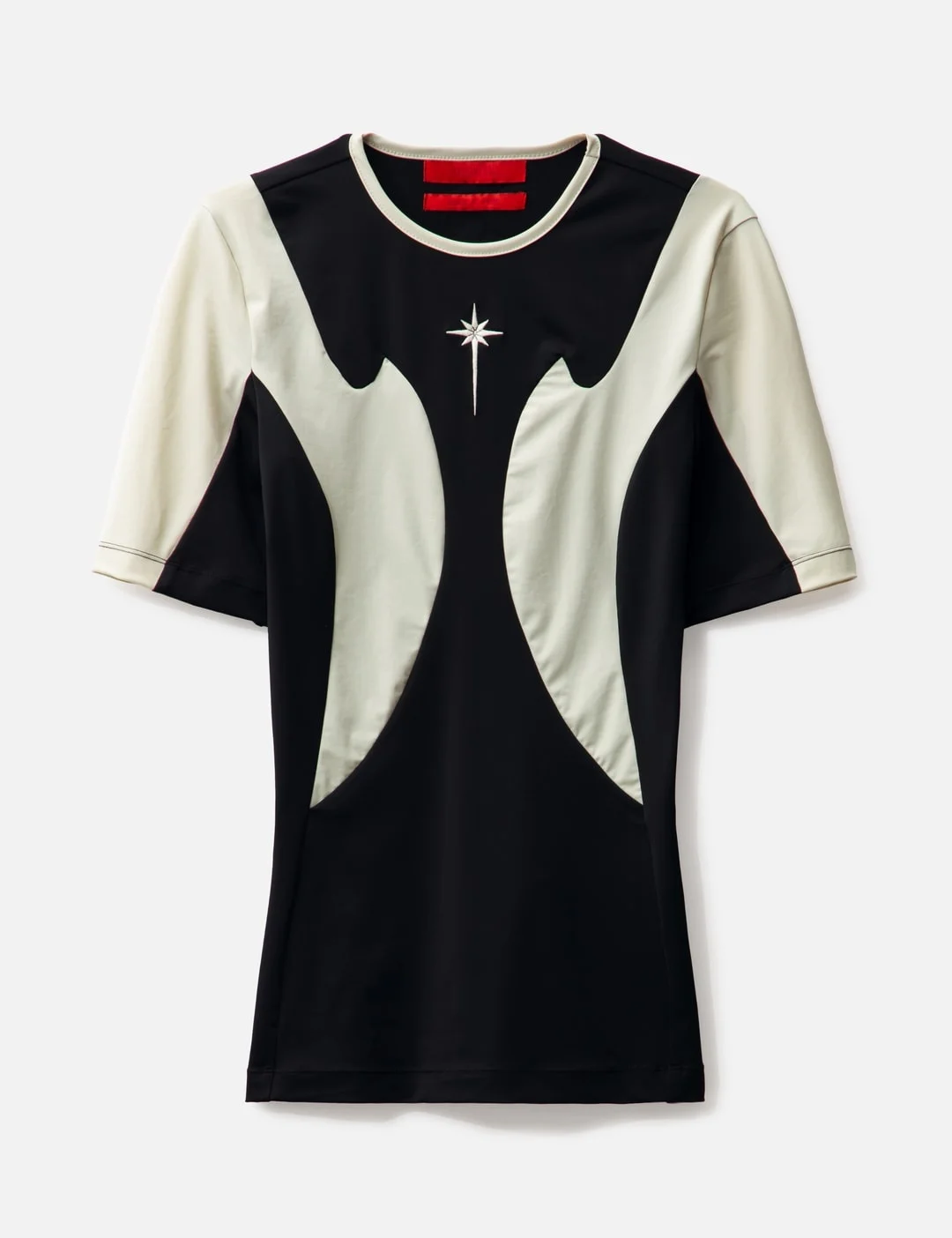 - KUSIKOHC - Rider Tight Top - Tight fit - Crewneck - Long sleeves - Printed graphics on the front - Contrasting panals - Straight hem - Color: Black and cannoli cream - Country Of Origin: KR - Material: 90% Nylon, 10% Spandex - See more SS T-Shirts, T-Shirts and Clothing SIZING - Model wears size M - Model measures: Height 186cm, Chest 34”/86cm, Waist 28”/71cm, Hip 36”/91cm