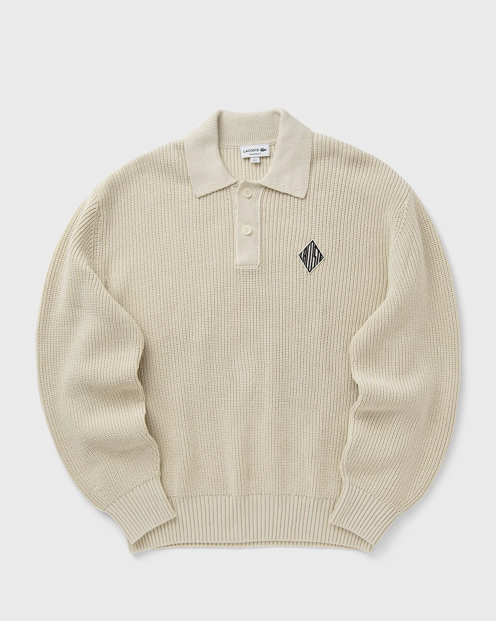 The Lacoste sweater combines 90 years of Lacoste style and expertise. With fine pearl rib knit details, a relaxed fit, and the retro logo badge from the runway collection, it makes a stylish statement. The design is rounded off with high-quality details inspired by the iconic polo shirt and the embroidered signature crocodile. - Organic cotton knit with pearl rib pattern - Relaxed, comfortable fit with slightly dropped shoulders - Medium-weight 7-gauge knit - Embroidered diamond logo badge on the chest - Branded corozo buttons - Color-coordinated embroidered crocodile at the waist Article number: AH0612-S7G Gender: men Color: POWDER Material: 74% Cotton, 26% Polyamide