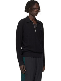 14-gauge knit cotton- and wool-blend polo. · Rib-knit spread collar, hem, and cuffs · Half-zip closure · Embroidered logo patch at chest Part of the Paris collection. Supplier color: Black Body: 80% cotton, 20% wool. Trim: 72% cotton, 20% wool, 6% polyamide, 1% polyester, 1% elastane. Made in Viet Nam 252268M212012