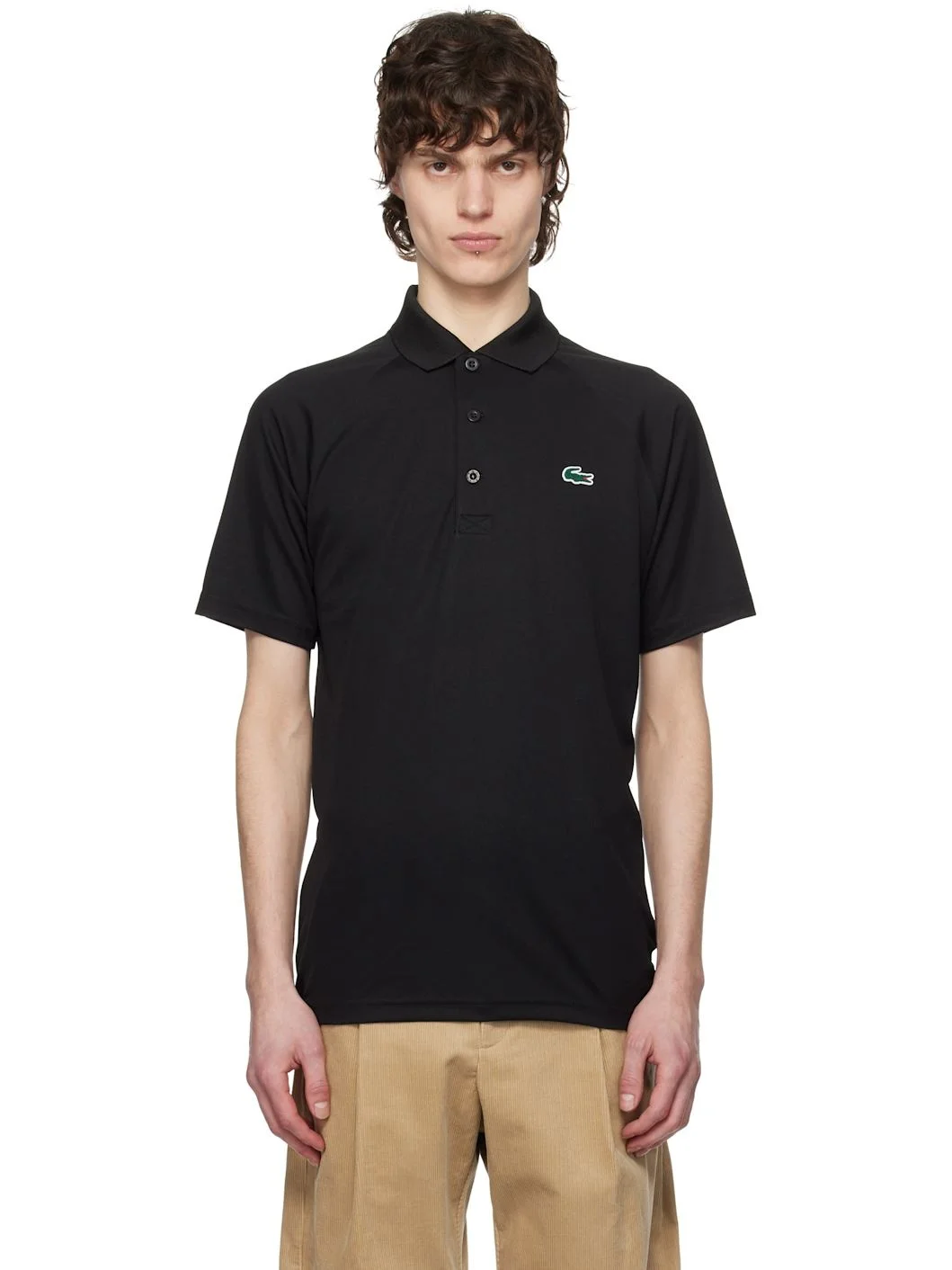 Ultra Dry polyester pique polo. · Rib-knit spread collar · Three-button placket · Rubberized logo patch at chest · Raglan sleeves · Text bonded at back hem Supplier color: Black Body: 100% polyester. Trim: 98% polyester, 2% elastane. Made in Colombia 251268M212033