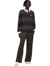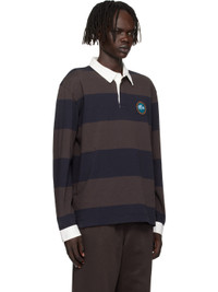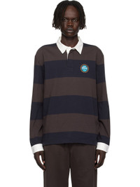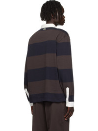 Heavyweight organic cotton jersey polo. · Striped throughout · Twill spread collar and cuffs · Three-button placket · Embroidered logo graphic patch at chest · Vented side seams · Buttoned barrel cuffs · Embroidered logo patch at back collar · Logo-engraved hardware Supplier color: Navy blue/Brown 100% cotton. Made in Viet Nam 252268M212002