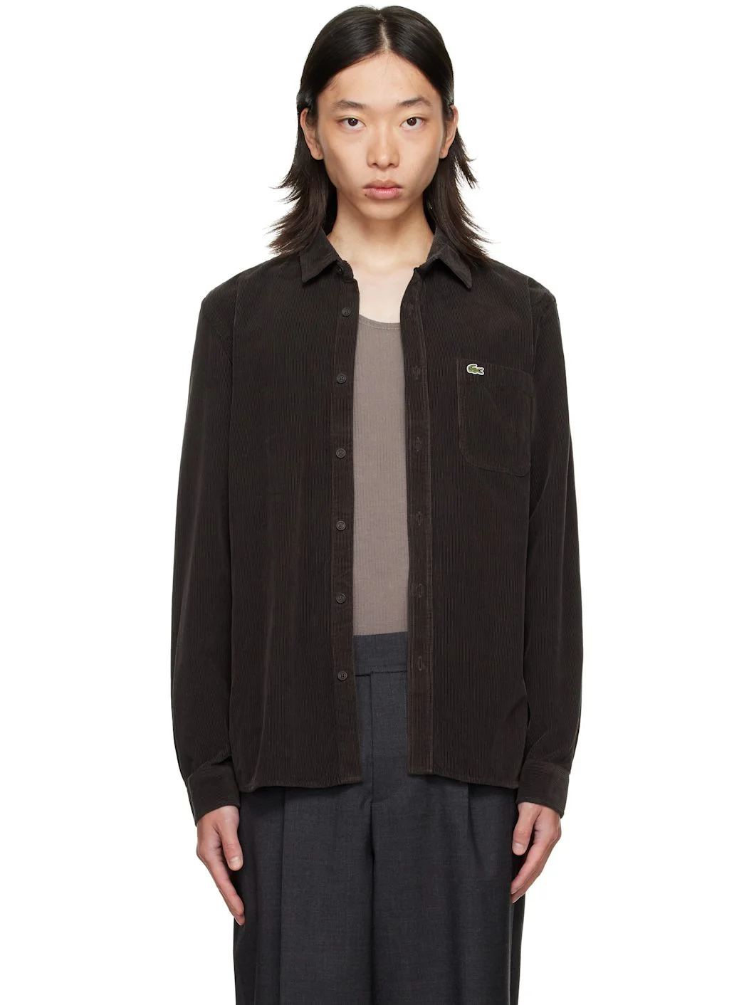 Cotton corduroy shirt. · Spread collar · Button closure · Logo patch and patch pocket at chest · Shirttail hem · Buttoned barrel cuffs · Pleats at back yoke Supplier color: Port 100% cotton. Made in Sri Lanka 252268M192004