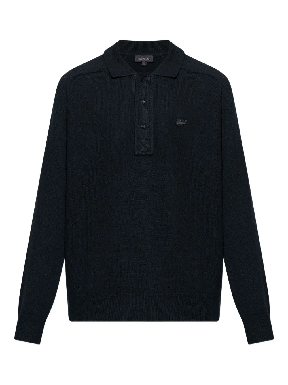 buttoned polo shirt Highlights - Dark green - Polo collar - Button fastening - Long sleeves - Ribbed knit Made in Italy Composition Wool 100% Washing instructions Read Manufacturer Guidelines