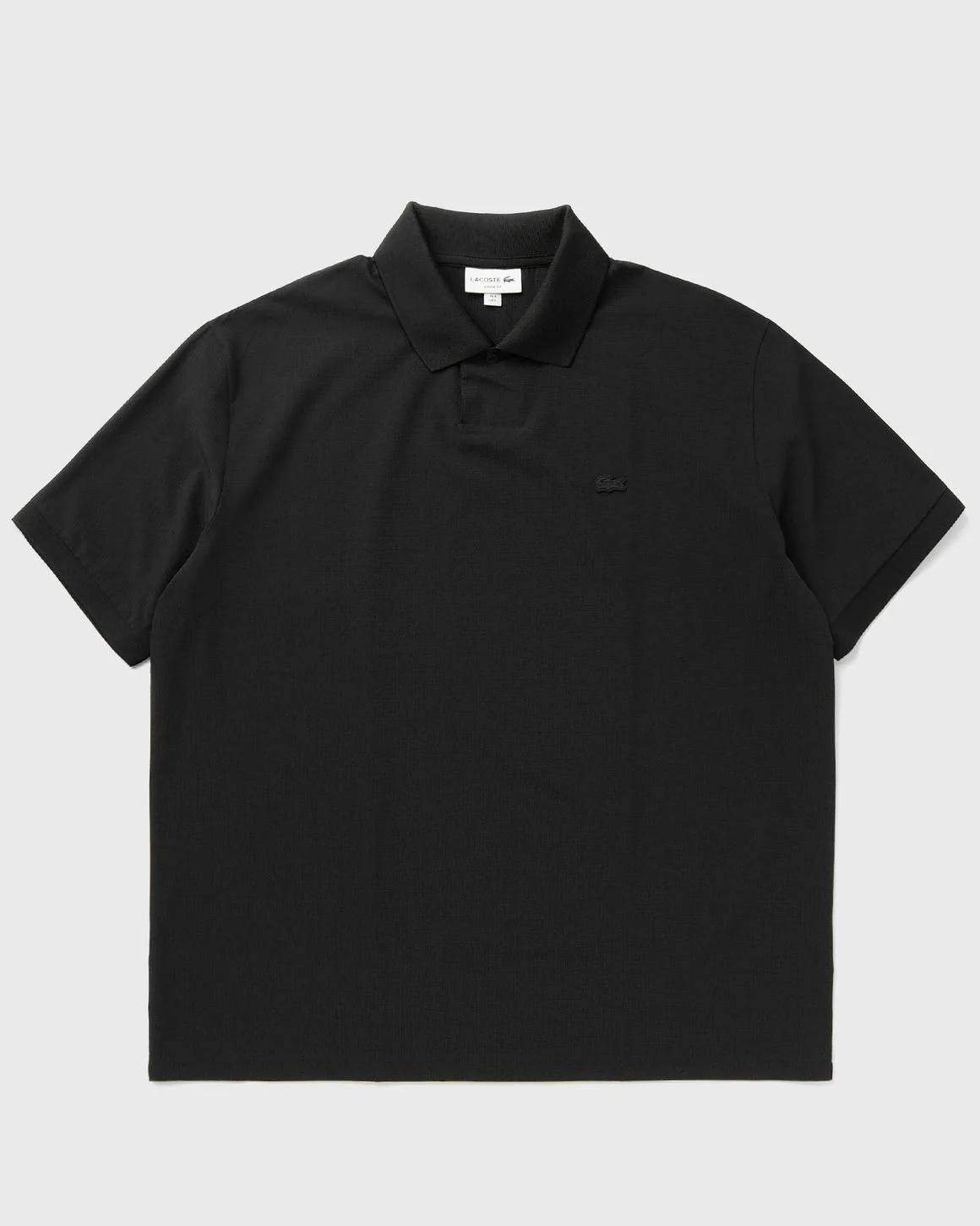 This shirt is a lightweight, modern reissue of the iconic Lacoste polo shirt. It is made from comfortable, breathable mesh, with a loose cut and unique details, including an extra-wide button placket. An embroidered signature crocodile completes the design. - Taffeta made from recycled, breathable polyamide, limits the use of new raw materials - Relaxed fit, dropped shoulders - Extra wide button placket with an elasticated button - Ribbed collar and sleeves - Color-coordinated embroidered crocodile on the chest Article Number: DH0163-031 Gender: Men Color: black Material: 83% Polyester, 17% Spandex/elastane