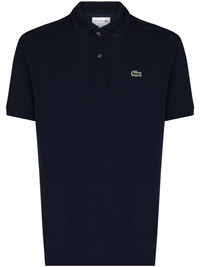 logo-applique polo shirt Let's go back to basics. Lacoste's black polo shirt is perfect for a whole host of smart-casual events, so you have one less thing to worry about when you're getting ready. You're welcome. Highlights - Navy blue - Short front button fastening - Polo collar - Short sleeves - Embroidered logo at the chest Imported Composition Cotton 100% SIZE & FIT Model measurements Height 6 ft 2 in(1.88 m) Bust/Chest 37.4 in(95 cm) Hips 37.79 in(96 cm) Waist 30.31 in(77 cm) FittingInformation This piece fits true to size. We recommend you get your regular size Cut for a relaxed fit Made with a mid-weight fabric