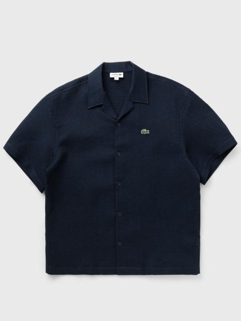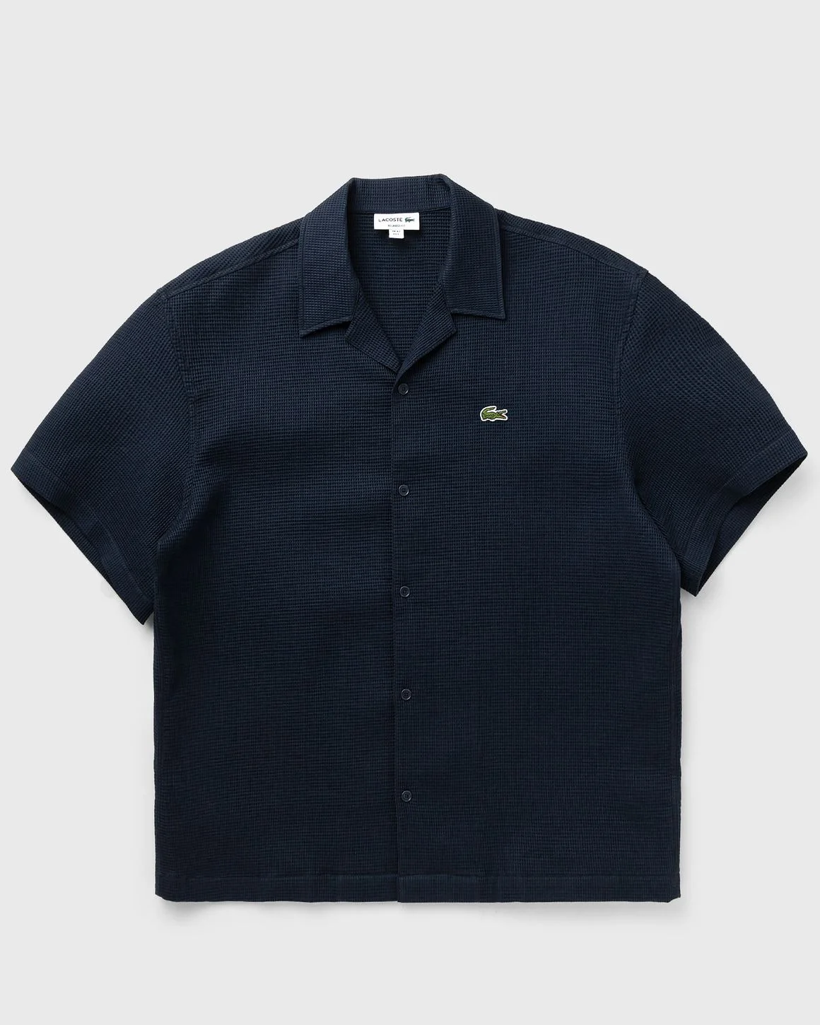 The Lacoste shirt with short sleeves ensures absolute style thanks to the characteristic Lacoste details. It is made from structured fabric with a waffle look for a soft and comfortable feel and features a characteristic signature crocodile. - Structured organic cotton - Casual, comfortable cut - Neck with wide opening - Color-coordinated corozo buttons - Sewn-on, embroidered crocodile on the chest Article Number: CH9924-C7Z Gender: Men Color: FALCON Material: 100% Cotton