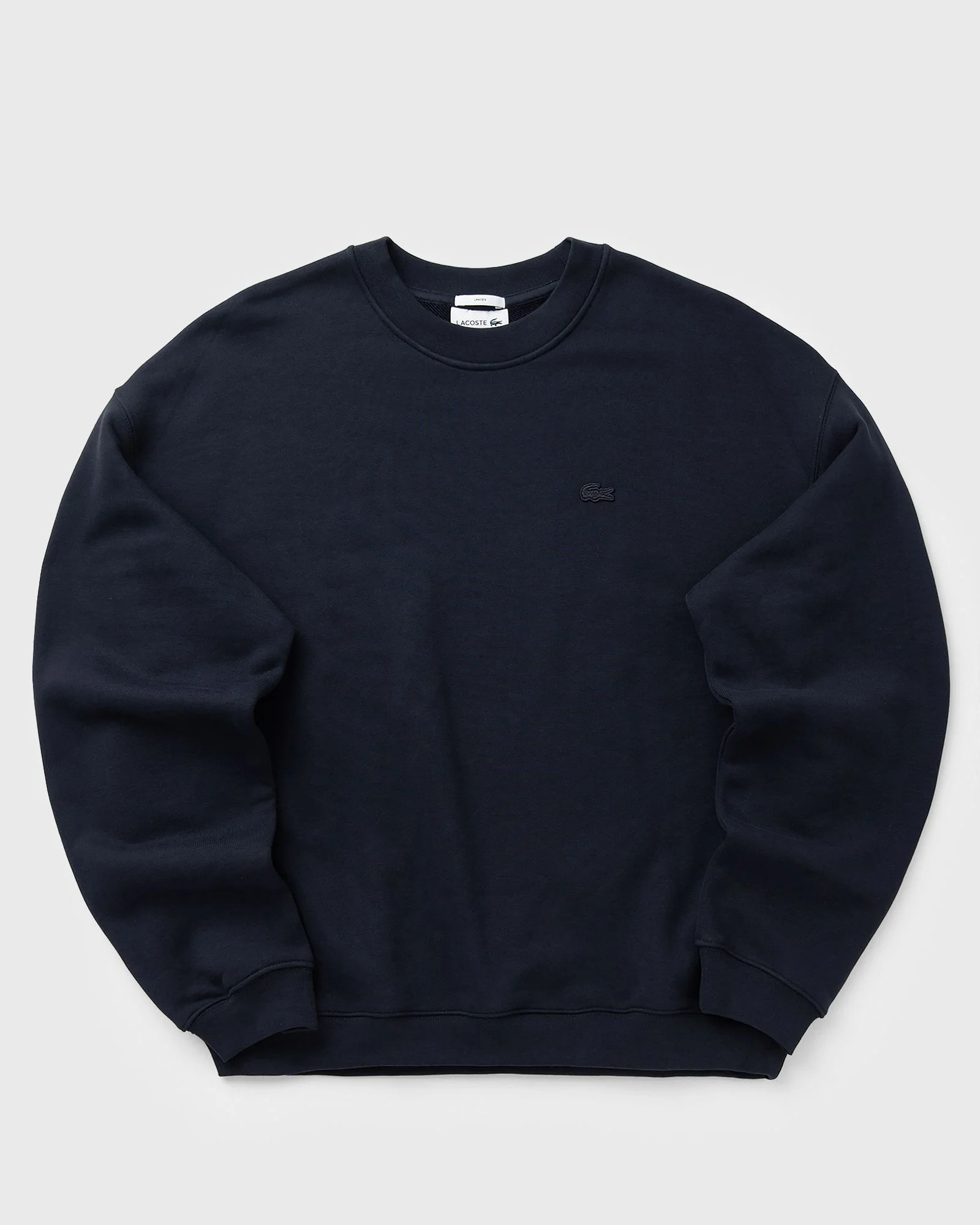 The Lacoste Loose Fit Sweatshirt combines casual style with maximum comfort. Made from heavy organic fleece, it impresses with its sustainable quality and durable design. The loose fit and subtle crocodile logo make it a timeless essential for everyday wear. - Heavyweight fleece made from organic cotton and recycled polyester from production waste - Casual fit, dropped shoulders - Ribbed knit at the neck, cuffs, and hem - Color-coordinated crocodile with black decorative stitching on the chest Article number: SH7745-166 Gender: men Color: Navy Blue Material: 100% Cotton