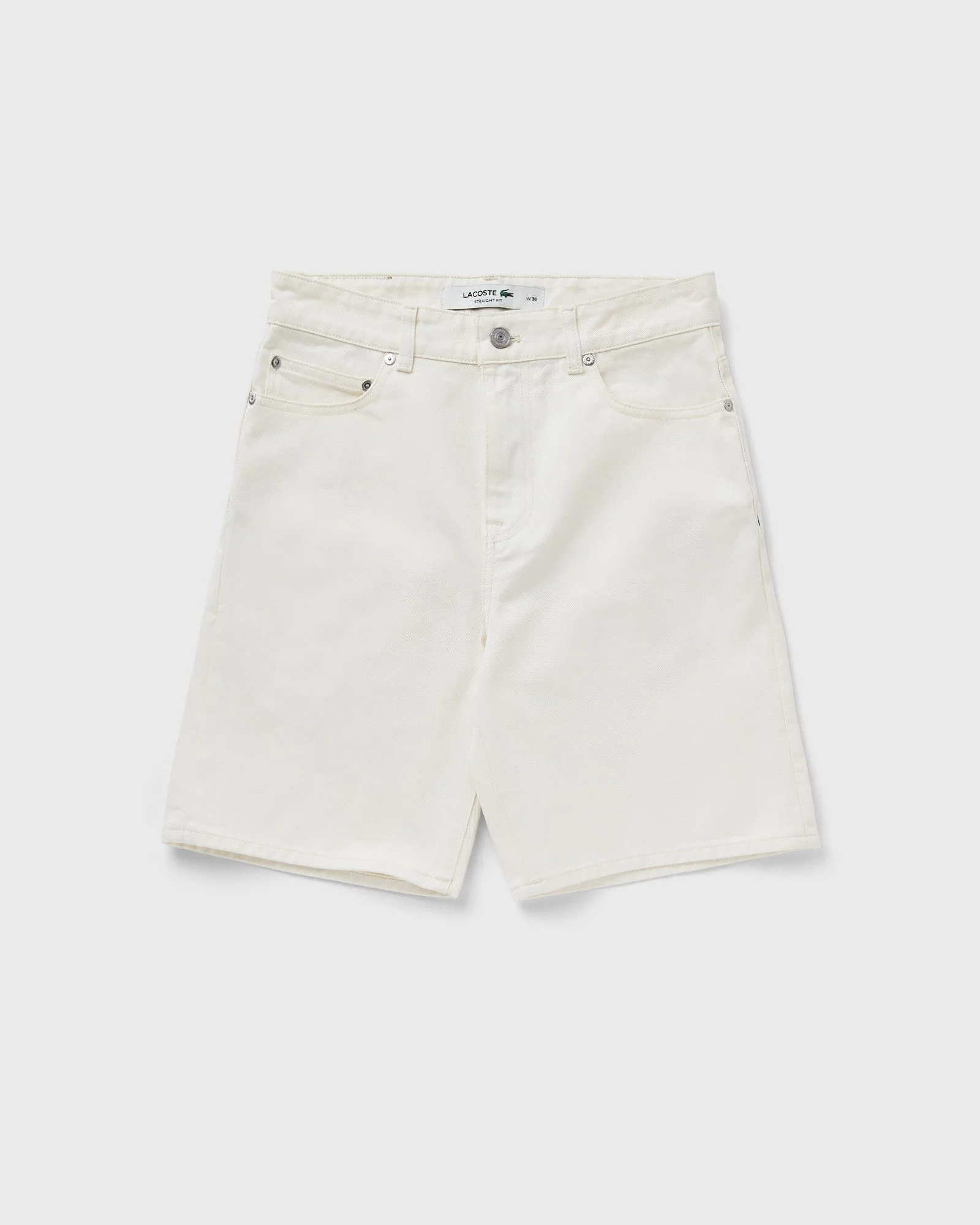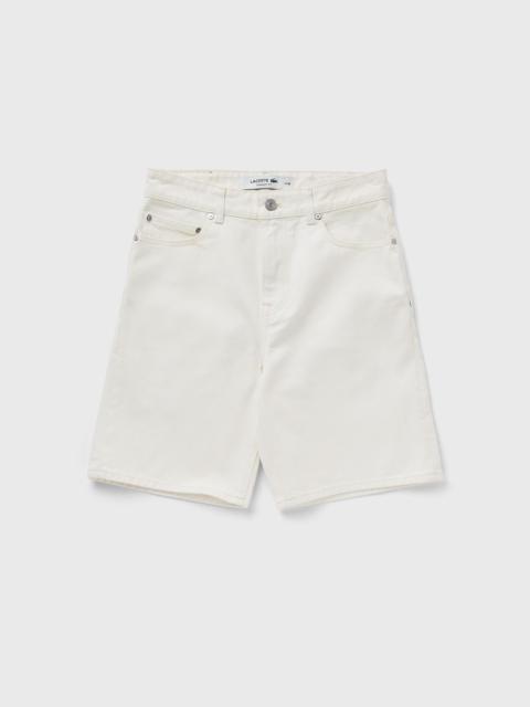 These Bermuda shorts are a new take on a Lacoste sportswear essential. They are made from lightweight, washed-out canvas with a classic five-pocket design and feature special details such as the iconic Lacoste green stitching on the pockets for a modern look. - Organic cotton denim - Straight, comfortable cut - Lightweight, washed-out canvas - Leather Lacoste label on the back - Embroidered crocodile on the right back pocket Article number: FH9932-70V Gender: men Color: Flour Material: 100% Cotton