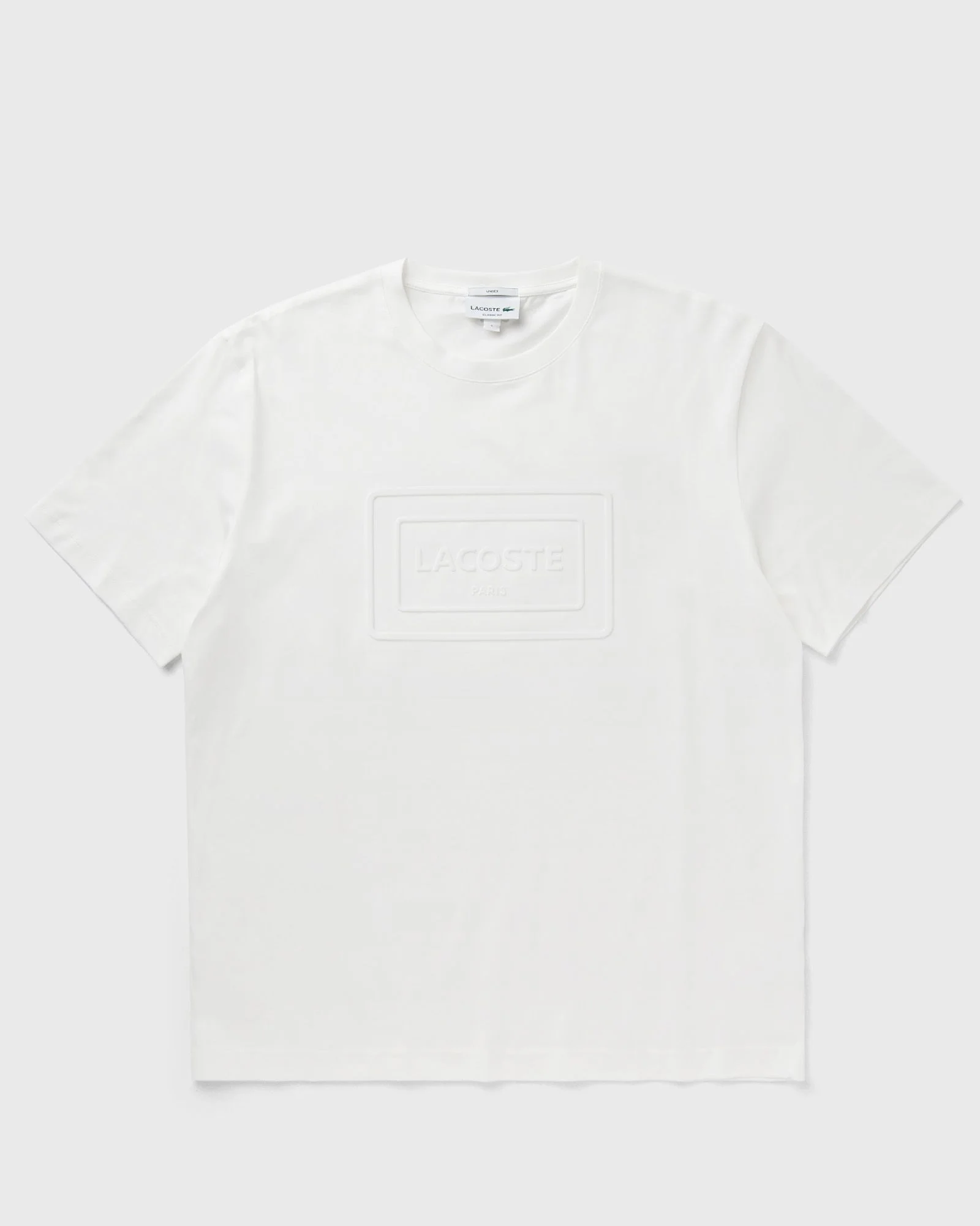 This cotton Lacoste T-shirt, from the sportswear pioneer since 1933, combines comfort and design expertise with iconic style. Color-coordinated embroidery, ribbed knit neckband, and embroidered crocodile on the back complete the piece. - Heavy cotton jersey - Classic fit with comfortable cut and sleeves - Ribbed knit collar - Embroidery on the front - Embroidered crocodile on the back Article number: TH0794-70V Gender: men Color: Flour Material: 100% Cotton