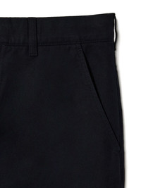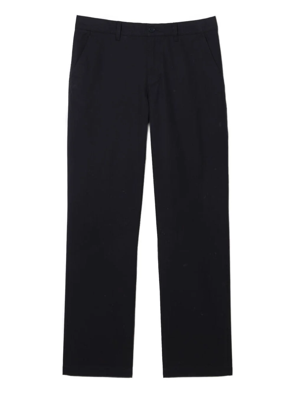 embroidered-logo flat-front trousers Highlights - Navy blue - Flat front - Embroidered logo - Button fly - Side pockets - Welt back pocket Imported Composition Fabric 100% Washing instructions Read Manufacturer Guidelines