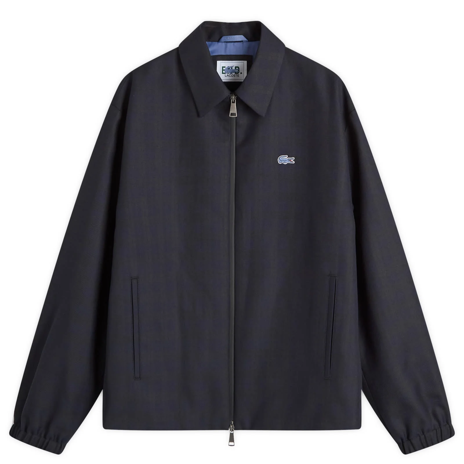 Bringing together Lacoste’s French finesse and END.’s North East roots, this collaboration continues the “Coastal” story, shifting gears from the wind-beaten promenade into the neon glow of the arcade. This jacket isn’t your dad’s Sunday best — when paired with the matching pants it’s the modern man’s tracksuit, redrafted with twill tailoring and a knowing nod to ‘90s North East car club clout. The capsule’s defining tartan check pattern makes a subtle appearance, while the Lacoste croc takes on a new blue shade — originally an exclusive to the US. - 70% Polyester, 30% Rayon - Classic Collar - 2-Way Zip Closure - 2 Side Welt Pockets - Embroidered Branding - Elasticated Cuffs - Product Code: BH3488