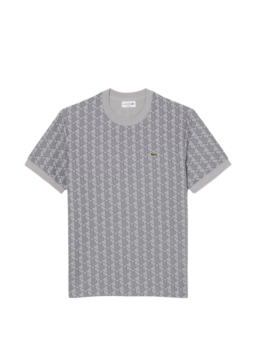 geometric print T-shirt Highlights - Grey - Geometric print - Round neck - Short sleeves - Cuffed sleeves Imported Composition Polyester 58%, Cotton 38%, Polyamide 4% Washing instructions Machine Wash
