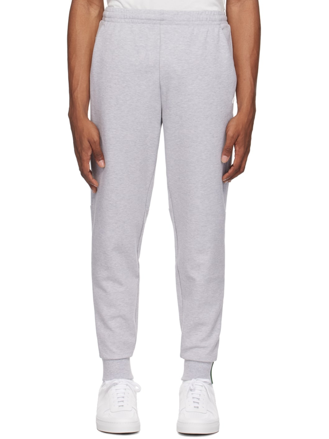Double-faced stretch polyester-blend jersey sweatpants. · Concealed drawstring at elasticized waistband · Three-pocket styling · Rubberized logo patch at leg and cuff · Rib knit cuffs Supplier color: Grey chine