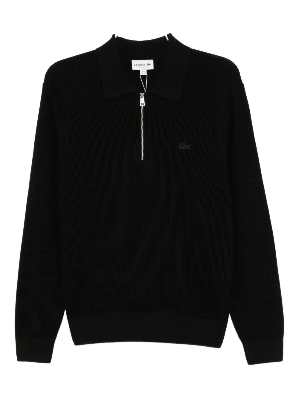 half-zip polo shirt Highlights - Black - Half front zip fastening - Long sleeves - Ribbed cuffs and hem Imported Composition Cotton 80%, Wool 20% SIZE & FIT Model measurements Height 6 ft 2 in(1.87 m) Bust/Chest 33.07 in(84 cm) Hips 35.43 in(90 cm) Waist 26.77 in(68 cm) FittingInformation Designed for a regular fit, this polo shirt offers a comfortable loose fit throughout the body The ribbed hem offers a close, comfortable fit Made with a lightweight knit, this piece offers some stretch