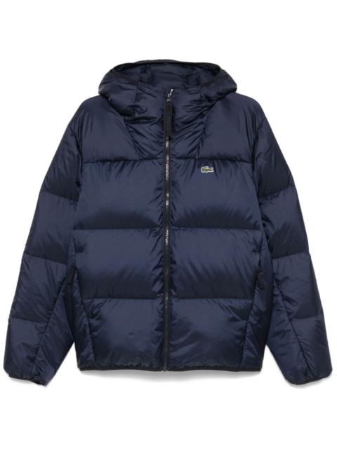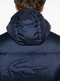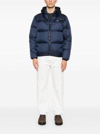 hooded padded jacket Highlights - Navy blue - Recycled polyester - Ripstop texture - Water-repellent - Windproof - Down-feather filling - Quilted - Padded design - Front zip fastening - High neck - Classic hood - Logo print to the front - Long sleeves - Elasticated cuffs - Logo patch at the chest - Two side zip-fastening pockets - Embossed logo to the rear - Quilted lining - Elasticated hem Imported Composition Outer: Recycled Polyester 100% Lining: Polyamide 100%, Polyester 100%, Duck Down 80%, Feather 20% SIZE & FIT Model measurements Height 6 ft 2 in(1.87 m) Bust/Chest 38.97 in(99 cm) Hips 37.99 in(96.5 cm) Waist 29.52 in(75 cm) FittingInformation Designed for a relaxed fit, this piece allows for comfort and movement when worn The elasticated hem allows for movement and a comfortable fit Made from a padded non-stretch fabric, giving it no natural elasticity