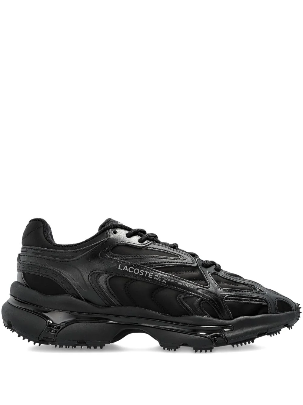 L003 2K24 textured lace-up sneakers Highlights - Black - Moulded texture - Lace-up fastening - Chunky sole - Low-top style - Padded collar Imported Composition Outer: Polyester 100%, Calf Leather 100% Lining: Fabric 100% Sole: Rubber 100%