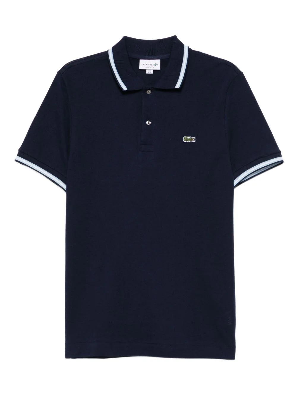 logo-applique cotton polo shirt Highlights - Navy blue - Front button placket - Ribbed cuffs - Contrasting border Imported Composition Cotton 100% Washing instructions Machine Wash